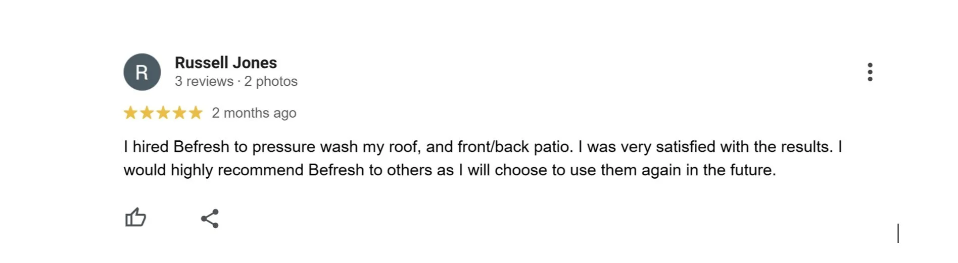 Welcome to BeFresh! Our goal is to ensure you’re completely satisfied with our work. We focus on delivering outstanding results so you’ll feel confident recommending us to others and choosing us again for your future cleaning needs. We stand by our service with a 100% Money-Back Guarantee, so you can book with peace of mind knowing your satisfaction is our priority.