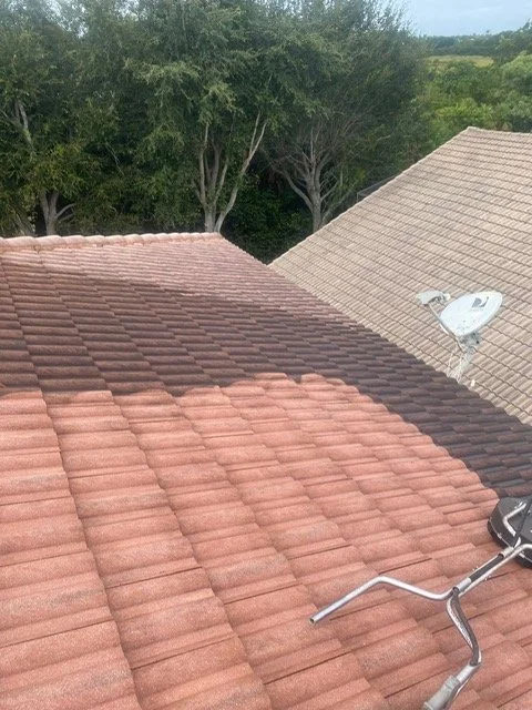 We use a soft wash system to safely remove dirt & mold with low-pressure techniques and an eco-friendly approach, protecting your roof while restoring its look.